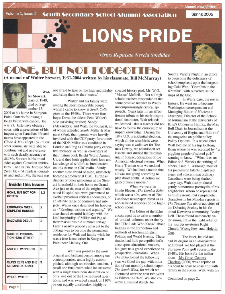 Journalist and author Walter Stewart (1931-2004) was the prolific author of non-fiction; his only two fiction works, Right Church, Wrong Pew and Hole in One are small town murder mysteries set in Kawartha Lakes, published by HarperCollins.