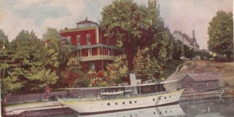 McDonnell’s house, now the Royal Canadian Legion branch 67. The riverbank is now McDonnell Park. This postcard is from the Beall scrapbook (from the Beall collection at the Kawartha Lakes Museum & Archives)