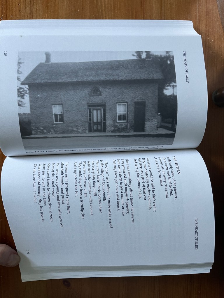 Also, technically, this isn’t strictly a poetry book. Although there are about 35 lengthy poems contained in the 200 pages, the book also presents a lot of history of the Downeyville area. The author’s note is dated 1 December 1960, and the book may have been intended to be part of the area’s history publications for the country’s centennial. It’s a shame it wasn’t published at that time.